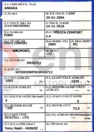 | Marka/Tip | FORD FIESTA 1.4i COMFORT |