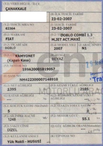 | Marka/Tip | FİAT DOBLO COMBI 1.3 MULTIJET ACTIVE |
